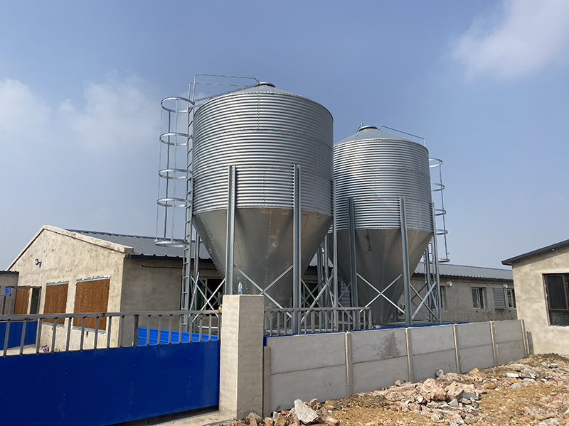 40°料塔倉頂為料塔提供了更大的強度和容量,還可防雨水進(jìn)入料倉。料塔底部漏斗形狀設(shè)計,為飼料輸送提供條件。